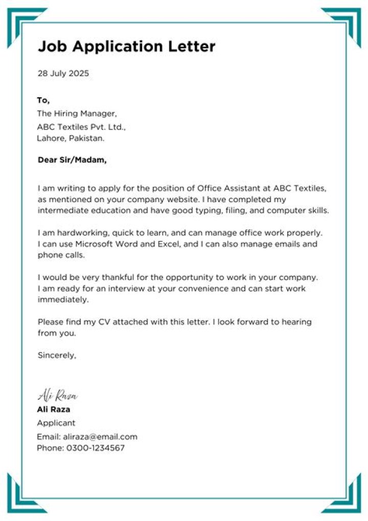 How do I write a letter of application for a beginner?