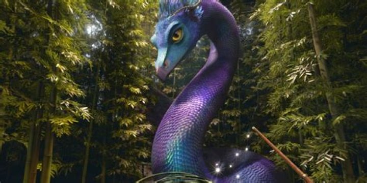 A fully grown Occamy It was a plumed, two-legged serpentine-bodied creature with wings that reached up to fifteen feet in height.