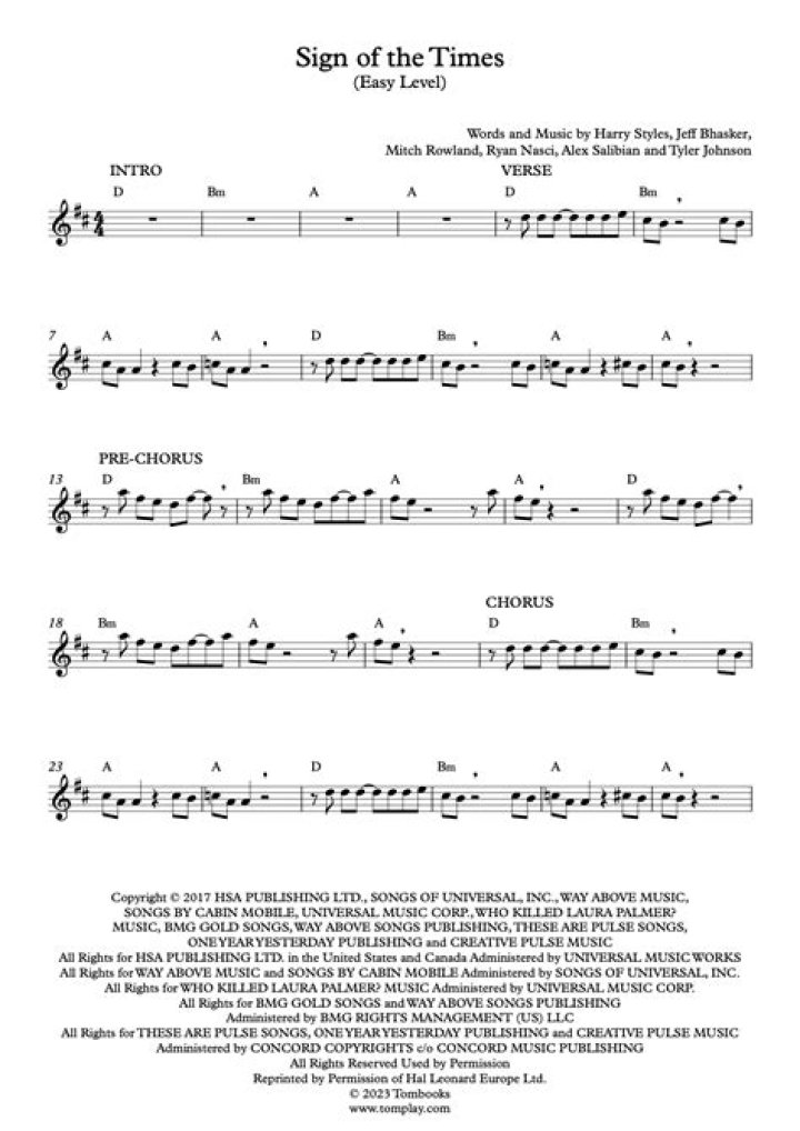 Simply so, what key signature is sign of the times in?