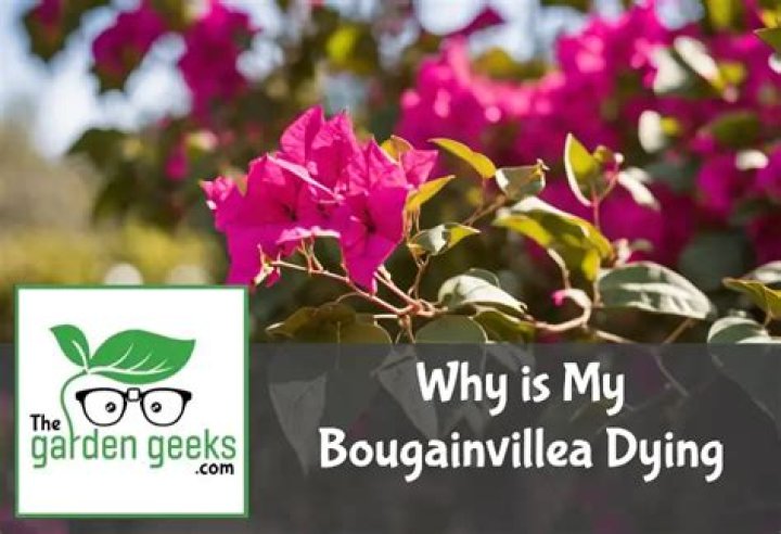 The most common reasons for dying bougainvillea are over watering, boggy soil, cold weather and not enough sun. Bougainvilleas are not cold hardy and can die because of frost. Over watering and slow draining soils causes root rot, resulting in a dying bougainvillea. ... Bougainvillea prefer dry conditions.