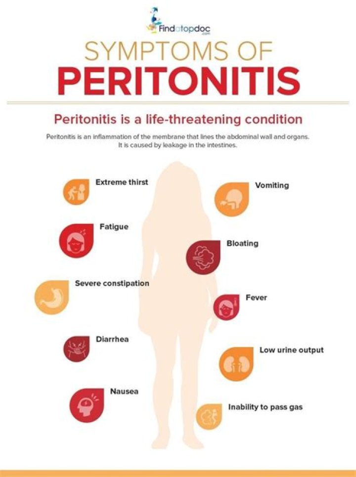 Left untreated, peritonitis can extend beyond your peritoneum, where it may cause: An infection throughout your body (sepsis). Sepsis is a rapidly progressing, life-threatening condition that can cause shock, organ failure and death.